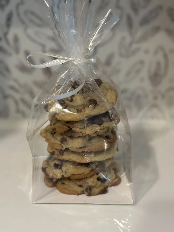 A sweet stack of six festive Christmas cookies, wrapped in a clear bag and tied with a holiday bow. Perfect for gifting, sliding into a stocking, or treating yourself to a cozy Christmas snack! Flavors include Ginger, Candy cane Cocoa, and Santas Snack (M&M + White Chocolate Chips).
